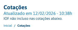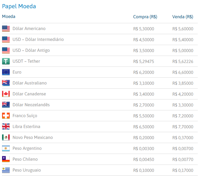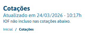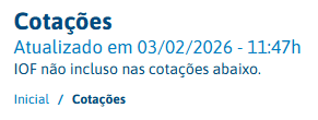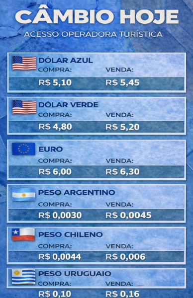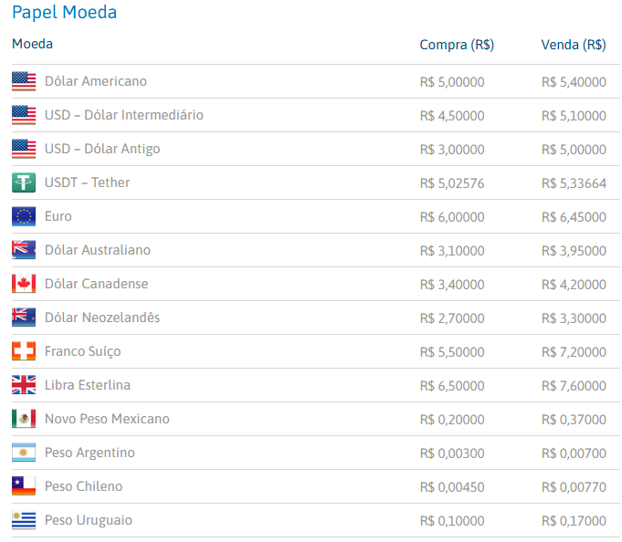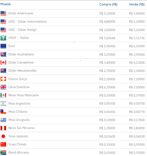 OBS: As taxas de Câmbio aqui apresentadas servem como referência diária e podem sofrer variações momentâneas.